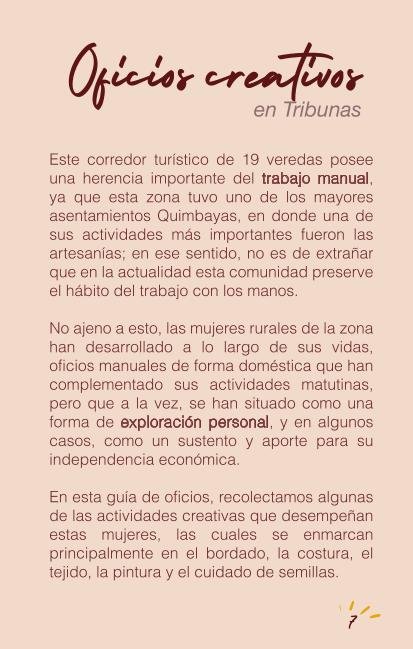 La metodología de este proyecto, -escalable a otros territorios- se basa en la apertura de espacios seguros y constantes para permitir diferentes modos de expresión emocional de las mujeres del corregimiento de Tribunas. Lo hacemos a partir de la realización de ciclos de creación manual, en donde cada mujer elige y desarrolla un objeto, por ejemplo, una prenda de vestir o un elemento decorativo.